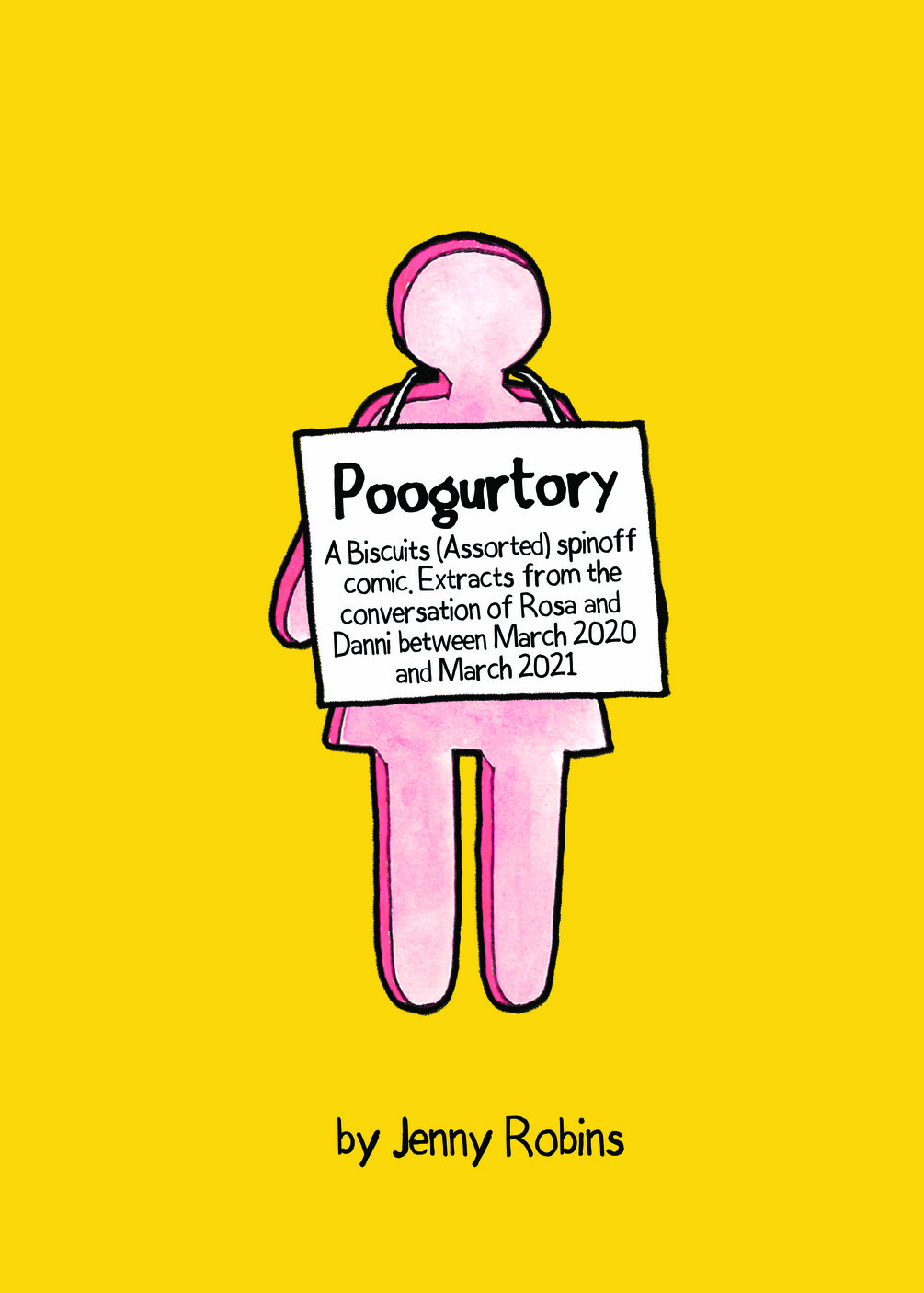 This 32 page comic follows the instant messages between those two women out of Biscuits (Assorted) that send each other pictures of their poo. It's not all about poo though. It's mostly just a record of a mostly adequate friendship, during a pandemic. With memes and jokes.
